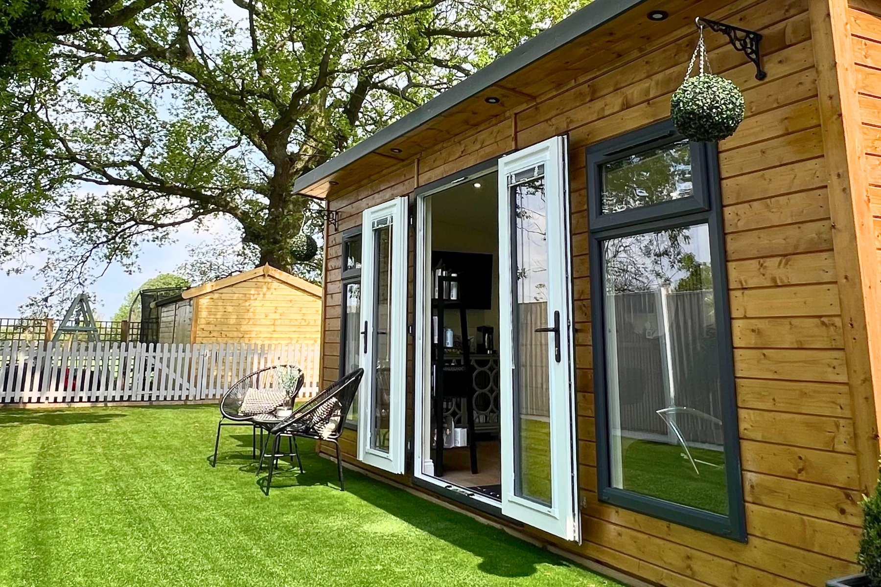 Transform the exterior of your garden room by adding outdoor furniture and lanterns, creating a charming setting for family time dinners and relaxing garden evenings with your better half.